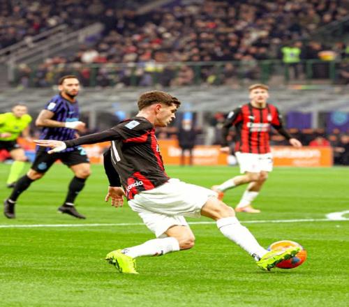 上半场米兰机会没有国米多,但在抓住机会这方面却是更胜一筹;第54分钟,恰尔汗奥卢中圈停球失误,优素福-福法纳断球斜塞右路反击,萨勒马克尔斯远射造成索默扑球脱手,普利西奇迅速跟进补射打破僵局,0:1!普利西奇近3个赛季意甲直接参与48球,追平劳塔罗并列第一。