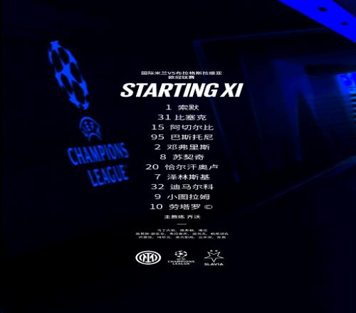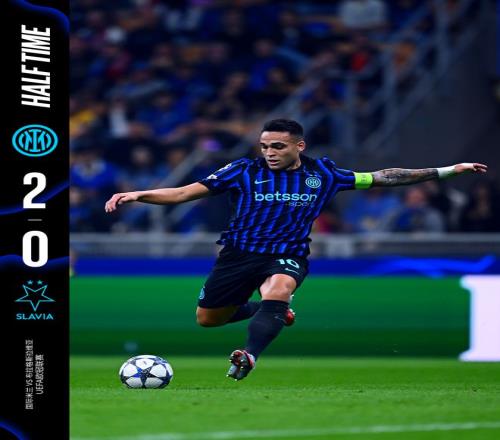 北京时间10月1日凌晨3:00,2025/26赛季欧冠联赛阶段第二轮主场对阵布拉格斯拉维亚。上半场劳塔罗抓对手失误破门,随后邓弗里斯扩大比分,下半场劳塔罗上演梅开二度,最终我们主场3比0战胜布拉格斯拉维亚,拿下3分!