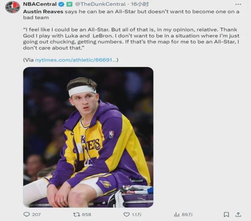 北京时间10月1日,距离常规赛揭幕战还有21天。湖人后卫里夫斯接受采访时说道:“我觉得自己完全有能力入选全明星,但我不想靠刷数据进全明星。我不想处在那种只能不断出手、只能刷数据的环境,那样的全明星我根本不在乎。”