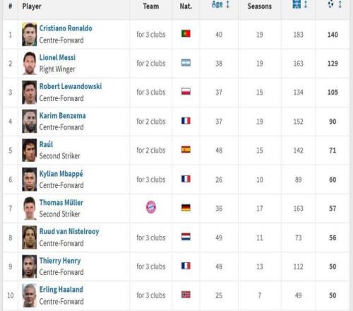 然而,哈兰德的欧冠客场进球占比仅有32%(16/50),在欧冠历史射手榜前十中(均至少打进50球),只有劳尔的客场进球占比(31%)低于哈兰德。