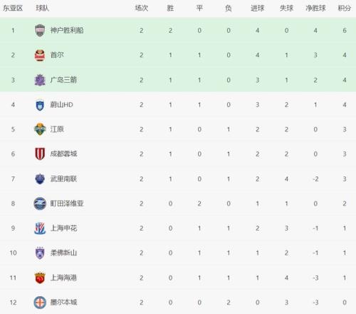 随着申花11,神户10绝杀,亚冠最新积分榜出炉:蓉城飙升至第6