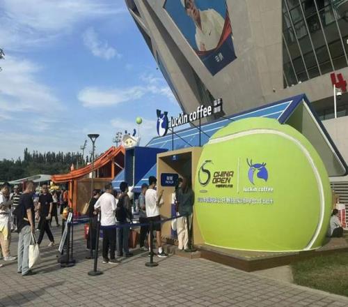 而走进中国网球公开赛的西广场,最直观的感受是不知道喝什么好。往左走是品品香的白茶摊位,往右是瑞幸的咖啡屋,不远处还有「补水啦」的特别展位。