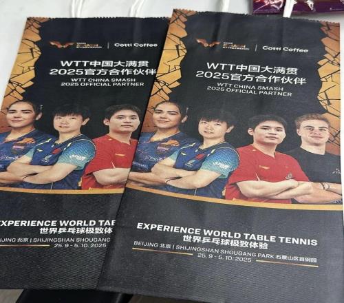 WTT中国大满贯的官方合作伙伴库迪咖啡也毫不逊色,狠狠刷了一波存在感。赛事期间,库迪直接在全国门店统一上线限定款包装袋。赛场内外,随处可见提着同款袋子的球迷。甚至还有不少粉丝将纸袋二创的攻略分享到了社交媒体,自发成为流动的广告牌。
