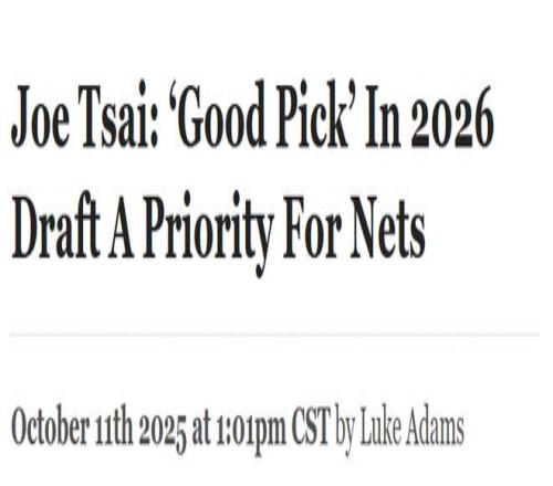 “我必须说,我们正处于重建之年,”蔡崇信表示,“我们用掉了2025年的所有选秀权——今年夏天我们共有五个首轮签。2026年我们有一个首轮签,希望能获得一个好的签位。所以,大家大概能猜到我们本赛季会采用什么样的策略。但我们的球队非常年轻。”