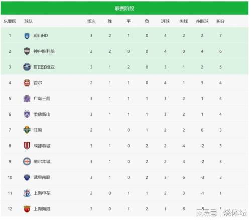 亚冠积分榜:上海海港1平2负排名垫底,中超两强皆主场完败