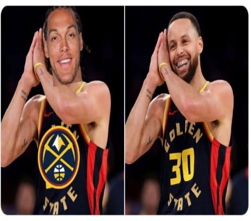 专门制作梗图的美国媒体NBA Memes晒出阿隆·戈登与库里的晚安庆祝图片,终究说晚安的还是招牌庆祝者库里。