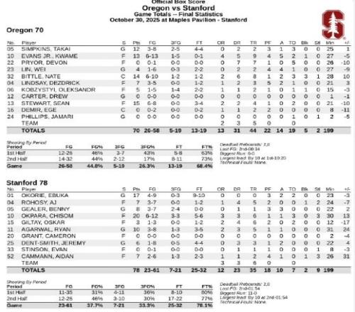 林葳还有2篮板4助攻表现,却还送出1次失误与4次犯规,在场正负值-9表现不理想,所在的俄勒冈大学也是遗憾70-78惜败斯坦福大学。