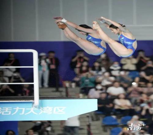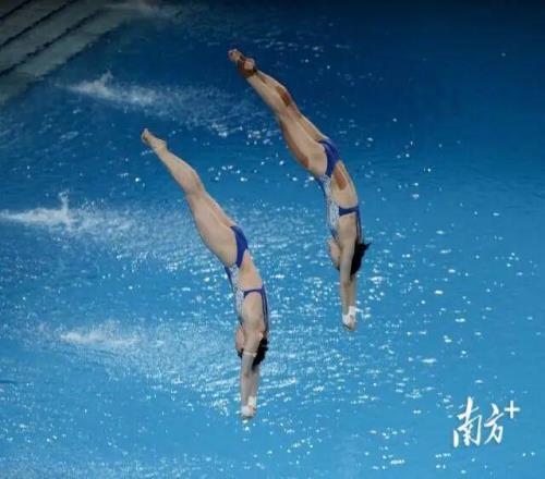 陈芋汐、掌敏洁完成比赛的最后一跃。