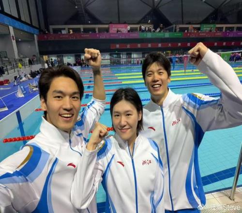 徐嘉余、叶诗文、汪顺参加“十五运”比赛/图片来源:汪顺微博