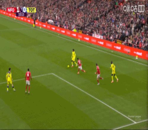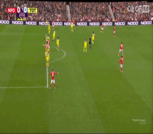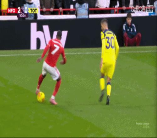 第28分钟,格雷后场被抢断,奥多伊推射空门,诺丁汉森林1-0领先热刺