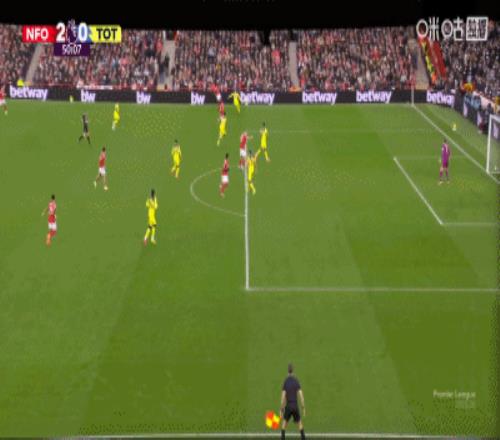 第50分钟,世界波!奥多伊吊射后点完成梅开二度,诺丁汉森林2-0热刺