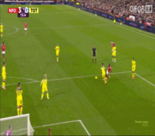 第79分钟,桑加雷接球后不停球轰出精彩世界波,热刺0-3落后森林!