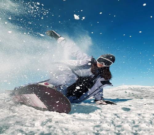 雪景美丽得就像村上春树笔下的“世界尽头与冷酷仙境”,板上的人已蓄势待发,情绪BGM已响起,不料下一秒就摔出了镜头外,原来村上春树想告诉年轻人——“滑雪就像人生,今天依然是摔得稀巴烂的一天”。