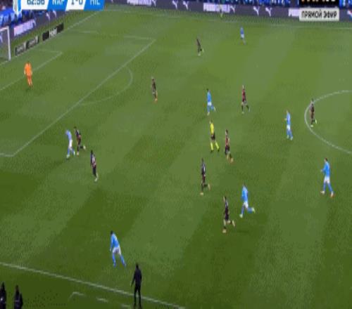 第20分钟,那不勒斯前场围攻,门将迈尼昂出击失误,AC米兰大门空了,埃尔玛斯小禁区左侧前沿获得很好的机会,只是他兜射空门打偏了。第34分钟,AC米兰右路压上,萨勒马克尔斯禁区角上45度斜吊门前,拉比奥特小禁区内一步超近距离头槌攻门顶高了。
