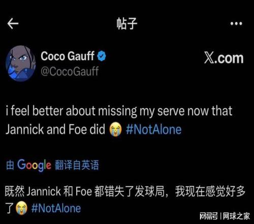 赛后,高芙还在社交媒体上连发两条一球制胜的博文打趣自己的表现,“既然辛纳和蒂亚福都是发球失误出局,那我感觉好受多了!”在赛事落幕后,她又发文表示,“精彩的赛事!一开始我就说,我希望业余球员夺冠!恭喜乔丹,太酷了!”