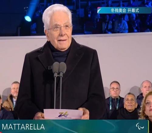 意大利共和国总统塞尔焦·马塔雷拉(Sergio Mattarella)正式宣布米兰-科尔蒂纳冬残奥会开幕。