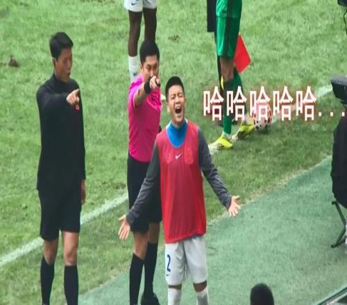 这下,中超的又一名场面出现了——面对中超“金哨”铁面无私的怒指,这位前广州队后卫不仅没有马上吓退,反而一个转身,背身就是一阵仰天狂笑(下图),以此来表达心中的郁闷。