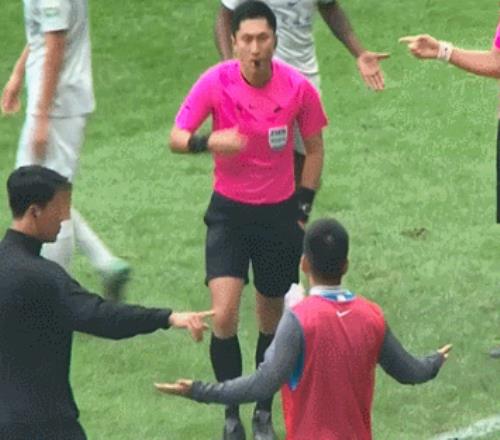 “京沪德比”北京国安1比1战平上海申花这场看似平静的比赛中间,一不小心再出中超名场面——敢质疑判罚?“卡牌大师”马宁跑到场边先后掏出两张黄牌,分别发给客队主帅和替补球员,果断制止了来自客队对判罚不满的声音。