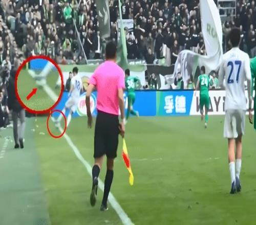 整体而言,这场比赛马宁的判罚没有多少瑕疵,唯一让上海申花产生质疑的就是上半场伤停补时阶段的一次判罚。第45分钟时,此时的申花0比1落后,年轻前锋刘诚宇带球到边线附近,一个扣球往里时,边裁举旗示意皮球已经出界,判给北京国安一个界外球。