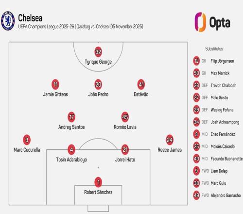 北京时间11月6日,欧冠联赛阶段第4轮比赛,切尔西做客阿塞拜疆挑战卡拉巴赫,与上一场客战托特纳姆热刺的比赛相比,马雷斯卡再次调整了7名首发球员。根据统计,本赛季至今切尔西在各