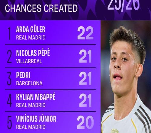 据“433”的统计,本赛季迄今为止,在欧洲五大联赛中,皇家马德里的姆巴佩和居莱尔在创造机会榜单上并列第一。前锋姆巴佩和中场居莱尔在皇家马德里赢下皇家社会的最新胜利中证明