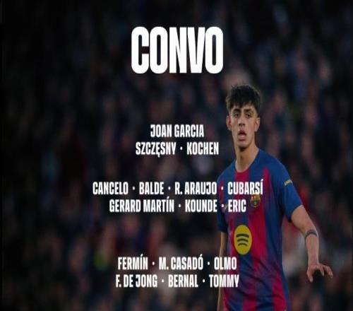 北京时间2月16日,巴塞罗那官方公布了明天凌晨4点客战赫罗纳的大名单,莱万、亚马尔领衔,拉菲尼亚回归。门将:霍安-加西亚、什琴斯尼、迭戈-科亨后卫:坎塞洛、巴尔德、阿劳霍、库巴